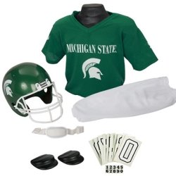 Franklin Sports NCAA Michigan State Spartans Deluxe Youth Team Uniform Set Small Warning Helmet and shoulder pads must NOT be used as protective equipment in football or any other contact sport Team logo helmet with face mask chin strap and Helmet number decal kit s 0-9 100 polyester-mesh team Read More..